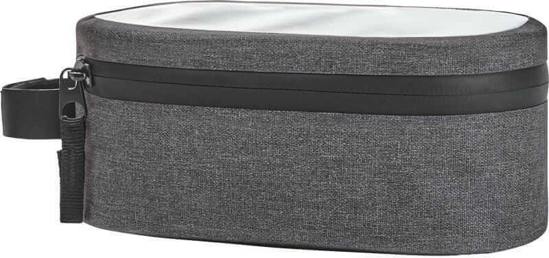 600D Polyester, PVC-frei. Gepolsterte Nähte für zuverlässigen Schutz vor Regenwasser und Feuchtigkeit, gepolsterter Boden, Hauptfach mit variabel einstellbarem Handyfach und transparenter Schutzfolie für Touchscreen-Bedienung, spritzwassergeschützt, Montage mit anpassbaren, starken Klettverschlüssen, Größe: 10,5x8x19cm