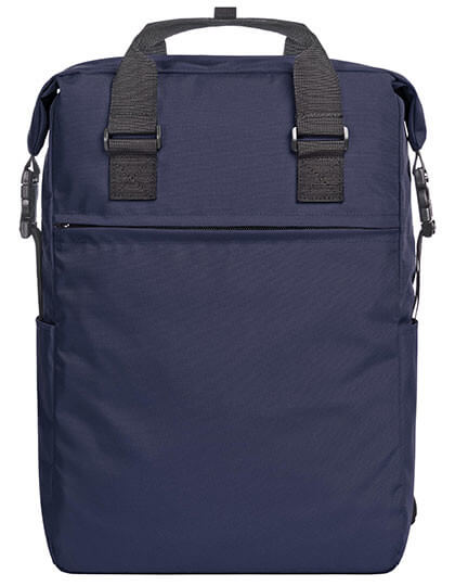 Urbaner Rucksack mit Klappe | Großes Hauptfach mit Reißverschluss und Klappe mit Klettverschluss | Obermaterial rPET | Gepolstertes Laptopfach und flaches Einsatzfach innen | Große Reißverschlusstasche auf der Vorderseite | Zwei seitliche Einsatztaschen z.B. für Flaschen | Gepolstertes Tragesystem | Tragegriff | Inhalt/Dekoration nicht enthalten