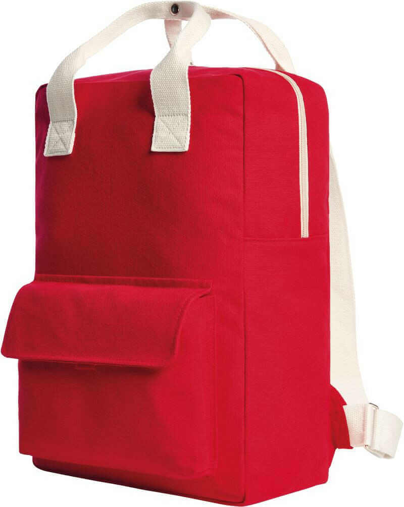 Material: Baumwolle 12 OZ, PVC-frei. 12 Unzen, Griffe mit Knopf, verstellbare Schulterriemen, Fronttasche mit Reißverschluss, flache Innentasche, Hauptfach mit 2-Wege-Reißverschluss, Volumen 18 l, Maße 27x38x13cm.