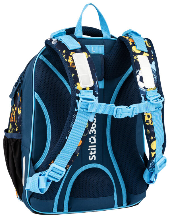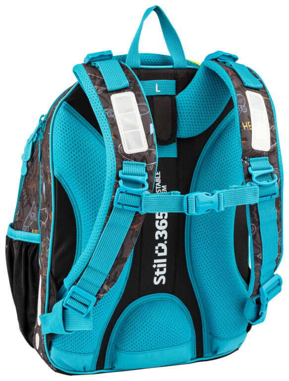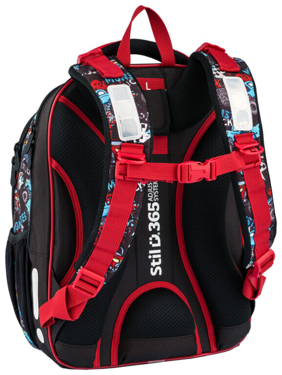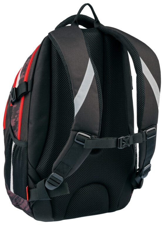 SPLIT-Rucksack: 1 Fronttasche mit Reißverschluss, 2 Hauptfächer mit Reißverschluss, ein Hauptfach mit gepolstertem Laptopfach und 1 Steckfach, zweites Hauptfach mit kleinem Organizer, Tragegriff, gepolsterte Schulterriemen und Rücken.