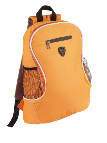 Rucksack aus 600D Polyester mit verstellbarem Schultergurt. Mit Netz-, Handytasche mit Reißverschluss und Hauptfach.