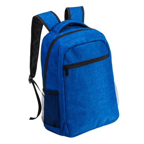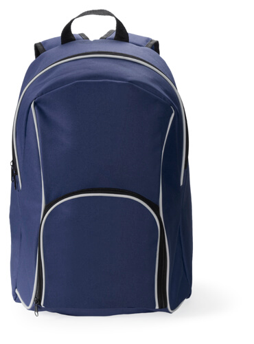 Rucksack mit Reißverschlussfächer, verstellbarem Schultergurt, gepolsterter Rückenpartie und Laptopfach. Material: 600D Polyester.