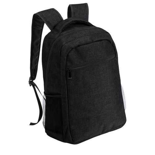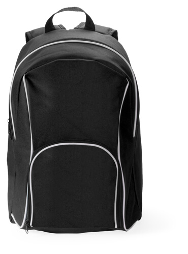 Rucksack mit Reißverschlussfächer, verstellbarem Schultergurt, gepolsterter Rückenpartie und Laptopfach. Material: 600D Polyester.