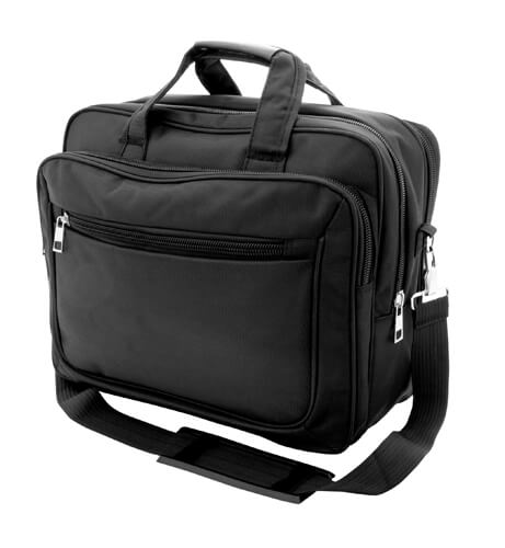 Dokumenten-Tasche mit gepolstertem Laptopfach, diversen Reißverschlussfächern und einstellbaren Schultergurt, Material: 600D Duotone Polyester.