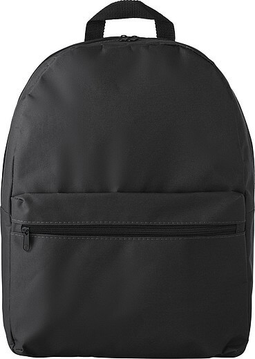 Polyester (600D) backpack with zipped main compartment, one zipped front pocket, and adjustable padded shoulder straps.