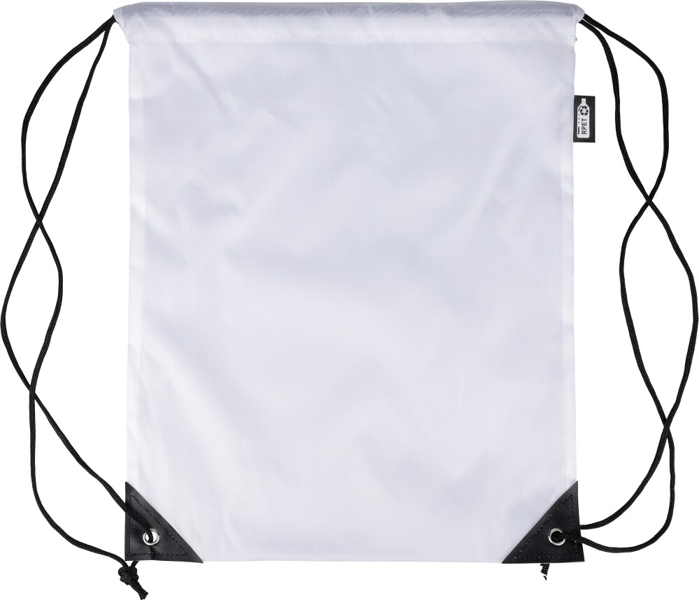 Vak na stiahnutie šnúrkou na zákazku z 600D RPET polyesteru, so zosilnenými rohmi z PU kože a hrubými šnúrkami v zodpovedajúcej farbe. S celoplošne tlačenou sublimačnou grafikou a výrazným štítkom RPET, cena nezahŕňa tlačovú prípravu. Min. mn.: 50 ks.