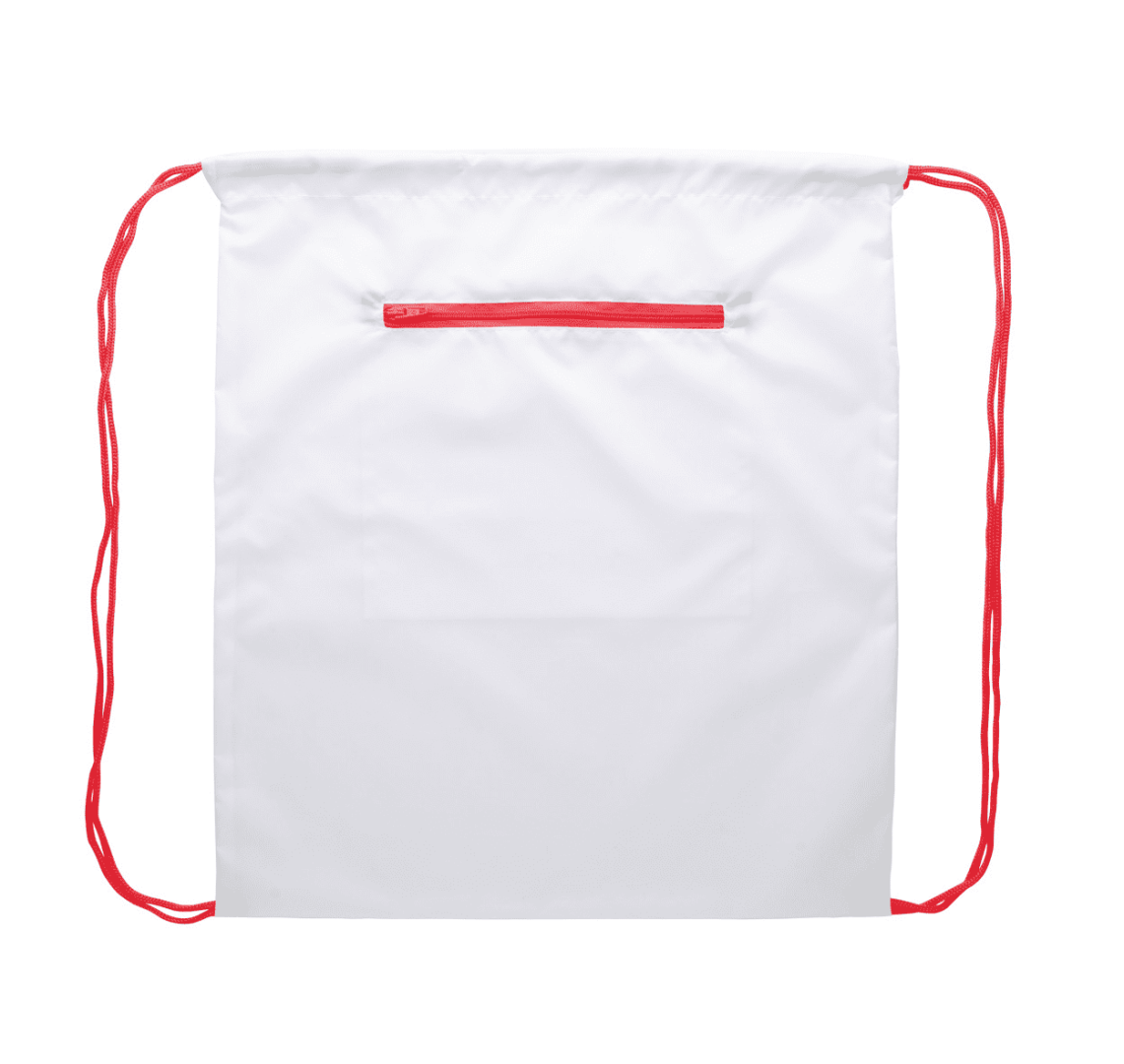 Vak na stahování šňůrkou na zakázku s přední kapsou na zip, 190T RPET polyester, s etiketou s označením RPET. S celoplošně tištěnou grafikou sublimací. Cena zahrnuje sublimační tisk, nezahrnuje tiskovou přípravu. Min. mn.: 50 ks.