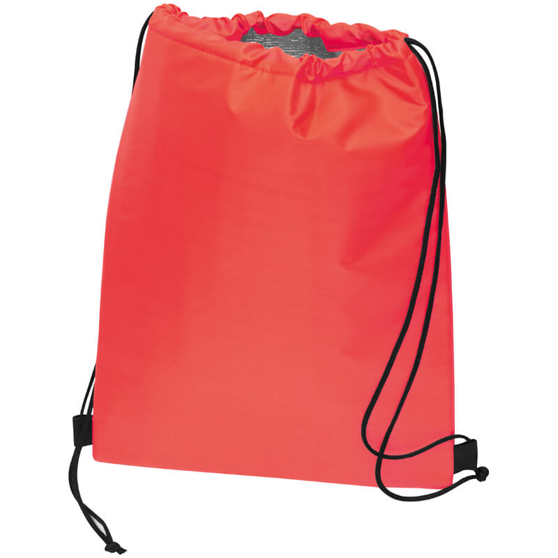 210D Polyester-Kühltasche mit Isolierfutter und Kordelzug. Druckmethode des Siebdrucks.