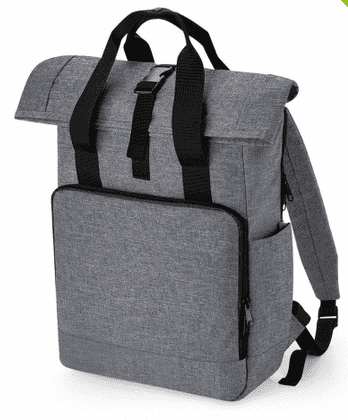 100% Polyester (recycelt, 600D), Tragegriffe aus Gurtband, Rollverschluss, gepolsterte, verstellbare Schultergurte, gepolsterte Rückseite, recyceltes Polyester aus etwa 12 Flaschen, sicheres, gepolstertes Laptop-Fach mit externem Zugang, kompatibel bis zu 15,6", Innenfach mit Reißverschluss, Organizer auf der Vorderseite, zur einfachen Dekoration, Flaschenfach außen, TearAway-Etikett, Fassungsvermögen: 19 Liter, Abmessungen: 30x44x14 cm, max. 27x18 cm, max. Druckfläche.