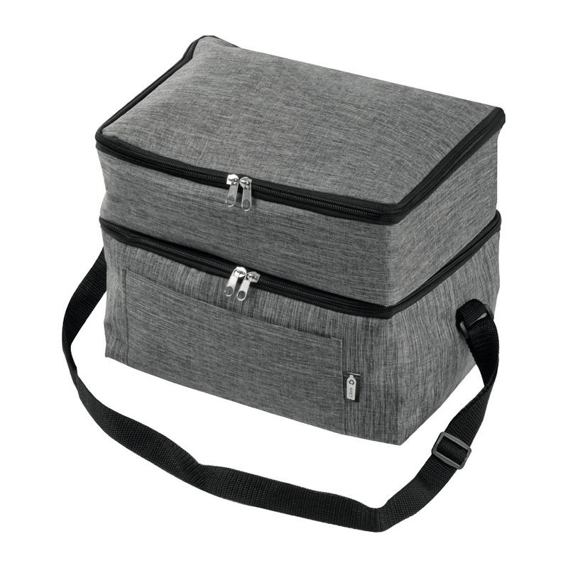 RPET-Kühltasche mit 2 separaten PEVA-Kühlfächern und Vordertasche. Dank des Schultergurts ist die Kühltasche ideal für alle Situationen, sei es beim Einkaufen, einem Tag am Strand oder im Urlaub.