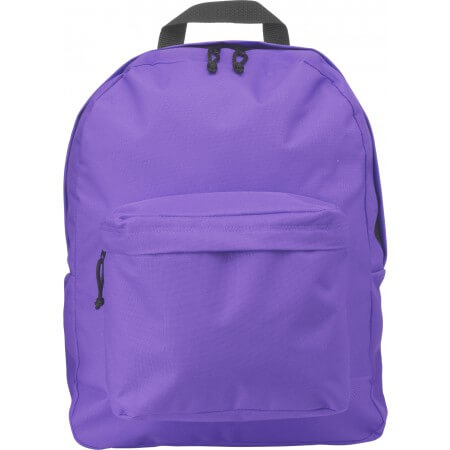 Polyester (600D) backpack with zipped main compartment, one zipped front pocket, and adjustable padded shoulder straps.