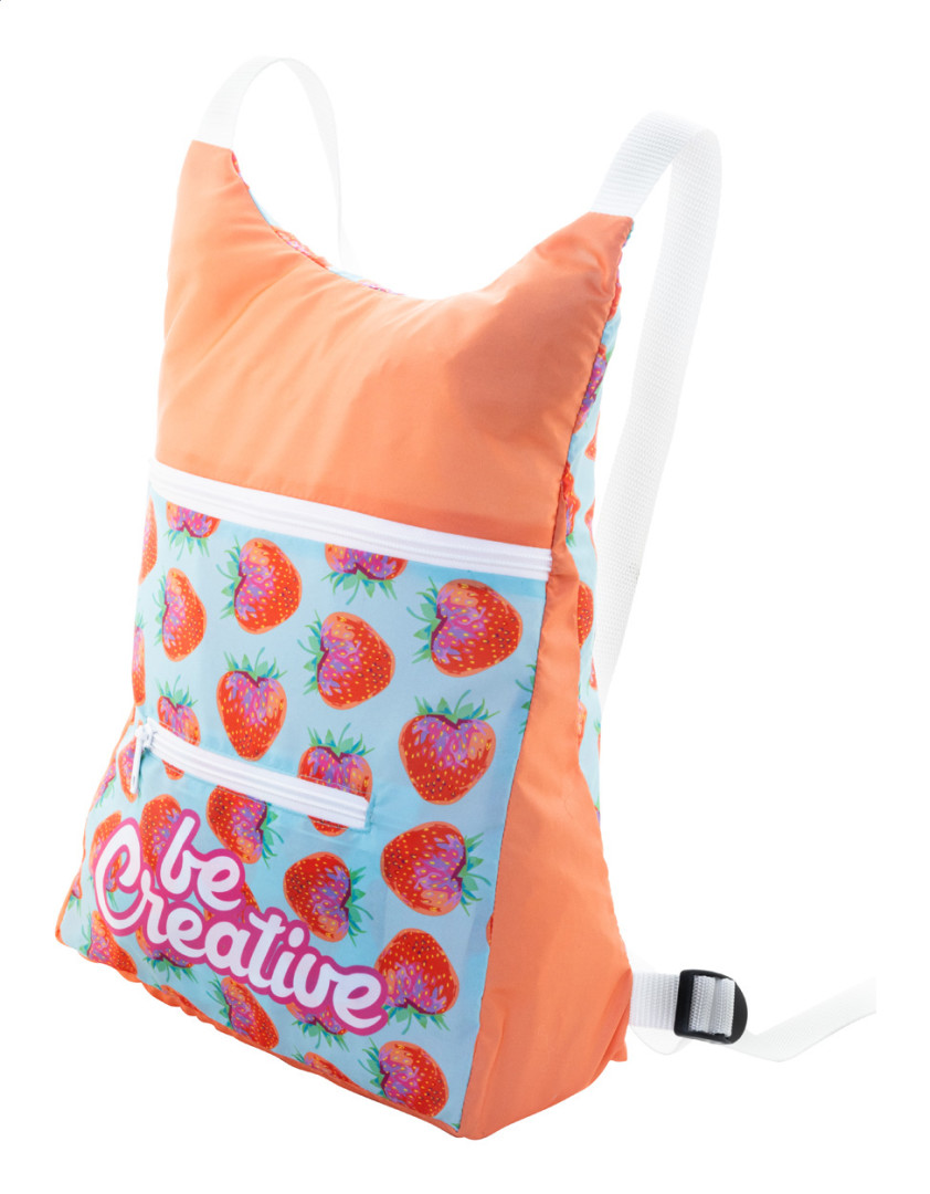 Maßgeschneiderter, faltbarer RPET-Rucksack mit einem Hauptfach mit Reißverschluss und einer Vordertasche mit Reißverschluss. Bei vollflächig im Sublimationsdruck gedruckten Grafiken ist die Druckvorbereitung nicht im Preis enthalten. 190T RPET-Polyester mit einem unverwechselbaren RPET-Etikett. Mindest. Menge: 25 Stk.