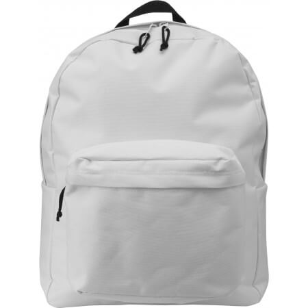 Polyester (600D) backpack with zipped main compartment, one zipped front pocket, and adjustable padded shoulder straps.