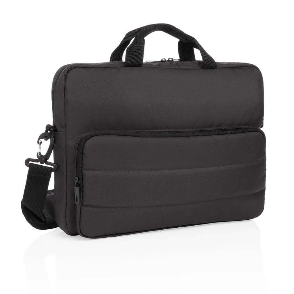 Mit dieser schlanken Laptoptasche im minimalistischen Design sehen Sie im Büro und unterwegs gut aus. Das Hauptfach verfügt über ein 15,6" Laptopfach sowie zwei offene Netztaschen. Zudem befindet sich vorne eine Reißverschlusstasche und oben auf ein PU-Griff. Das Außenmaterial und das Futter besteht aus recyceltem Polyester. Mit AWARE™ Tracer, der die Verwendung tatsächlich recycelter Materialien bestätigt. Bei der Herstellung jeder dieser Taschen wurden 5,2 Liter Wasser gespart sowie 8,75 0,5L-PET-Flaschen wiederverwendet. Weiterhin werden 2% des Erlöses jedes verkauften Impact-Produkts mit AWARE™ Tracer an Water.org gespendet.