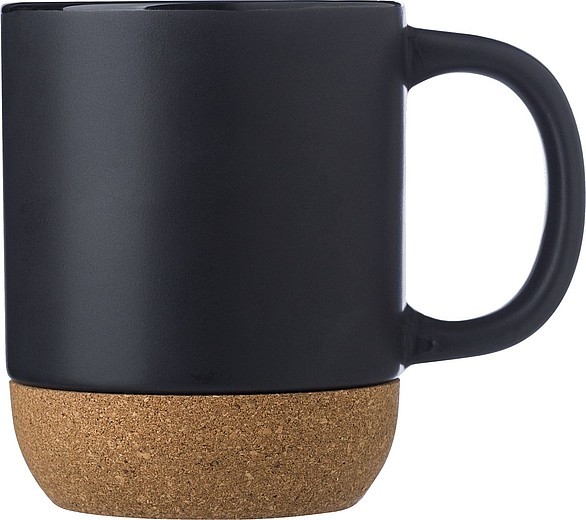 Große Keramiktasse mit einem Volumen von 350 ml und einem extravaganten Korkboden. Druckverfahren Brennen.
