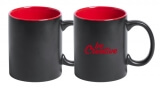 Schwarze Keramiktasse mit farbiger Innenseite, 350ml. Zwischenschicht für eine farbige Gravur (Farbe der Innenseite). Lieferung in Geschenkbox.