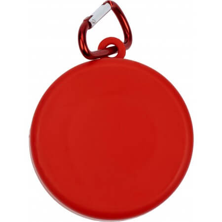 Plastic foldable drinking cup (220 ml) with compartment for pills/sugar etc. with a carabiner belt clip.