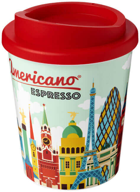 Brite-Americano® Espresso 250 ml Isolierbecher. Kompakter, doppelwandiger Isolierbecher mit Schraubverschluss. Passt unter die meisten Kaffeemaschinen. Der Becher verfügt über ein vollfarbiges, umlaufendes Design, das an das Produkt angepasst ist – für Strapazierfähigkeit und Haltbarkeit. EN12875-1 konform; spülmaschinen- und mikrowellenfest. Das Fassungsvermögen beträgt 250 ml. Mischen und kombinieren Sie Farben, um Ihren perfekten Becher zu kreieren. Kontaktieren Sie den Kundendienst für weitere Farboptionen. Hergestellt in Großbritannien. Mindestabnahmemenge 50 Stück. PP-Kunststoff.