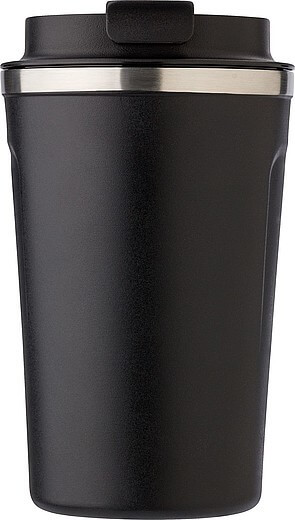 Plastic travel mug (500 ml) with a stainless steel centre.