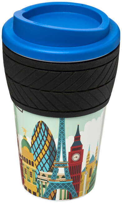 Brite-Americano® 350 ml Isolierbecher mit Schutzring Reifen-Design. Doppelwandiger Isolierbecher mit aufschraubbarem, auslaufsicherem Deckel und Silikongriff im Reifen-Design. Der Becher verfügt über ein vollfarbiges, umlaufendes Design, das an das Produkt angepasst ist – für Strapazierfähigkeit und Haltbarkeit. EN12875-1 konform; spülmaschinen- und mikrowellenfest. Das Fassungsvermögen beträgt 350 ml. Mischen und kombinieren Sie Farben, um Ihren perfekten Becher zu kreieren. Kontaktieren Sie den Kundendienst für weitere Farboptionen. Hergestellt in Großbritannien. Mindestabnahmemenge 50 Stück. Silikon.