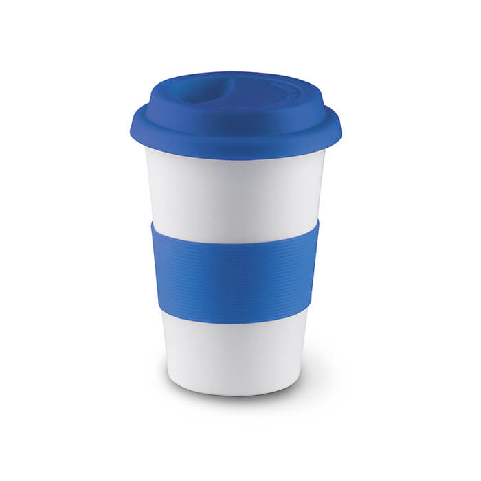 Nachhaltiger 350ml Becher mit Silikongriff und -deckel. Hergestellt aus 100% biologisch abbaubarem, pflanzlichem Material (PLA). BPA frei und spülmaschinenfest. PMS color 1: Cool Grey 9, PMS color 2: White PMS color 1: 200, PMS color 2: White PMS color 1: 7461, PMS color 2: White PMS color 1: 388, PMS color 2: White PMS color 1: 363, PMS color 2: White PMS color 1: 152, PMS color 2: White PMS color 1: 234, PMS color 2: White