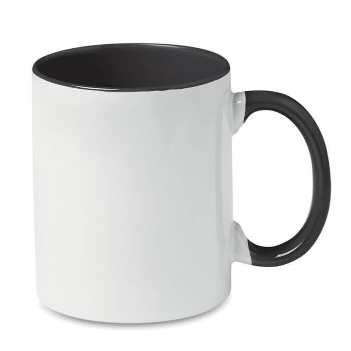Kaffeebecher aus Keramik. Füllmenge: 300ml. Mit spezieller Beschichtung für Sublimationsdruck. Farbiger Griff und farbige Innenseite. Verpackt in einem weißen Karton. Für einen langanhaltenden Sublimationstransfer empfehlen wir Spülmaschinenreinigung bis max. 40°C.