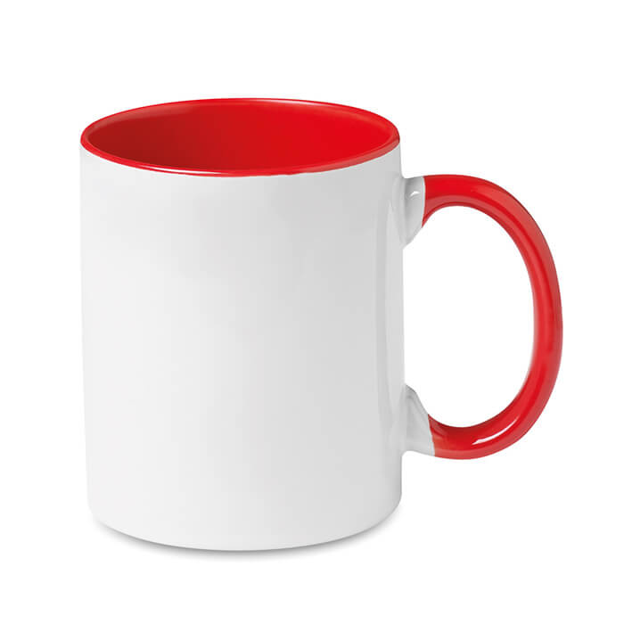 Kaffeebecher aus Keramik. Füllmenge: 300ml. Mit spezieller Beschichtung für Sublimationsdruck. Farbiger Griff und farbige Innenseite. Verpackt in einem weißen Karton. Für einen langanhaltenden Sublimationstransfer empfehlen wir Spülmaschinenreinigung bis max. 40°C.