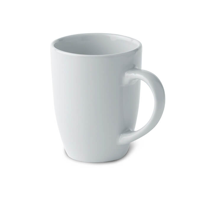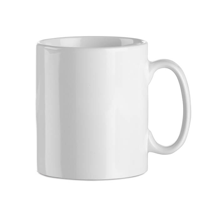 Kaffeebecher aus Keramik. Spezielle Beschichtung für Sublimationsdruck. Füllmenge: 300 ml. Verpackt in einem weißen Karton.