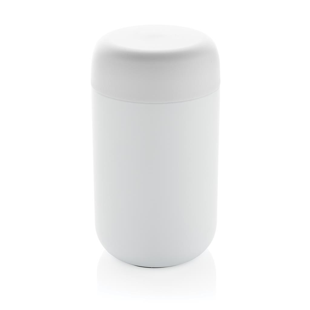 Vakuum-Trinkbecher aus Edelstahl mit transparentem Deckel und verschiebbarem Trinkstock. Volumen 300 ml.