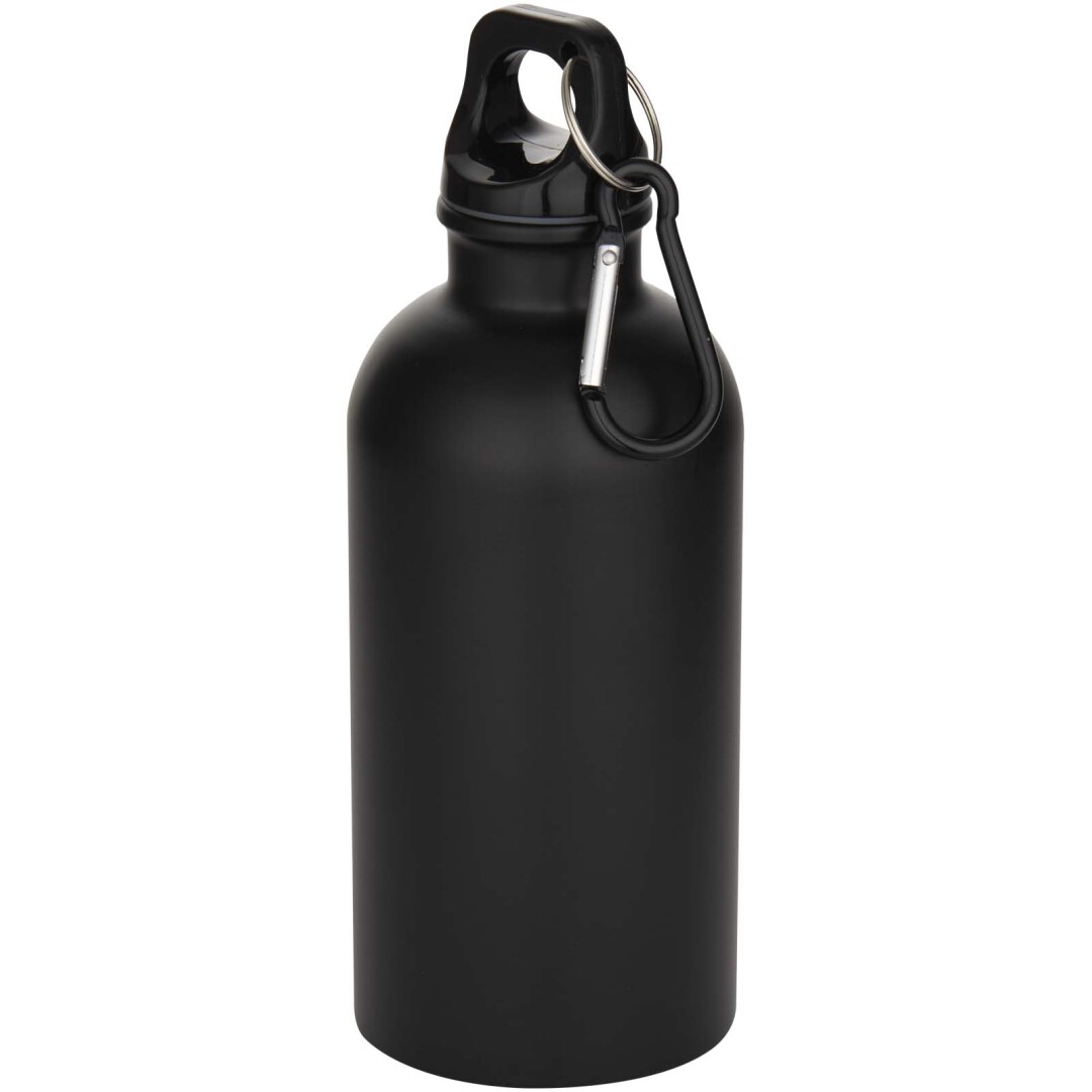 Mit dieser robusten und leichten 400-ml-Wasserflasche aus RCS-zertifiziertem, recyceltem Edelstahl mit matter Oberfläche bleiben Sie immer hydriert. Sie ist das perfekte Accessoire für Sport, Tagesausflüge oder den Bürogebrauch. Die einwandige Oregon-Flasche mit Drehverschluss bietet viel Platz für Ihr Logo. Befestigen Sie den mitgelieferten Karabiner (nicht zum Klettern) an Ihrer Tasche, um die Flasche sicher aufzubewahren.
