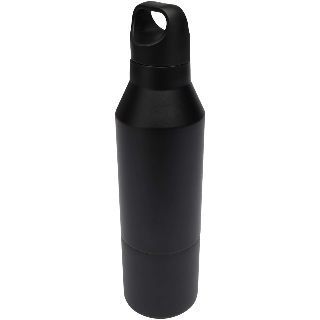 RCS-zertifizierte doppelwandige Kupfer-Isolierflasche aus Edelstahl mit abnehmbarem Becher. Diese Mehrzweck-Flasche ist so konzipiert, dass sie in die Seitentasche eines Rucksacks passt, und verfügt über einen praktischen in den Deckel integrierten Tragegriff. Die Außenseite der Flasche ist mit einer langlebigen Pulverbeschichtung versehen. Hält Getränke 12 Stunden warm oder 24 Stunden kalt. Verpackt in einer Geschenkbox aus Recyclingkarton. Fassungsvermögen der Flasche: 600 ml. Fassungsvermögen Tasse: 300 ml. Recycelter Edelstahl. Verpackung: FSC Mix Credit P5.1 CU-COC-877277.