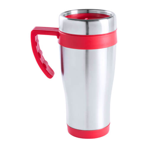 Doppelwandiger Isolierbecher aus rostfreiem Stahl mit farbigen Kunststoffteilen und -Griff, in Geschenkbox, 450 ml.