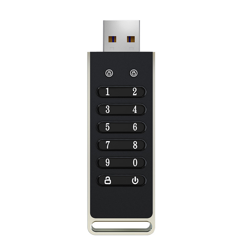 Ochrana dat a informací v nich obsažených je v dnešním světě čím dál větším úkolem. V případě přenášení citlivých dat mezi různými počítači vždy hrozí, že se k nim dostane někdo nepovolaný kvůli zapomenutí nebo ztrátě přenosného úložiště. Představujeme vám USB disk pro přenášení citlivých dat se zabezpečením pomocí PIN kódu a s hardwarovým šifrováním uložených dat. K těmto datům se dostane jen uživatel, který tento PIN zadá při připojení disku na numerické klávesnici na jeho těle. V případě neautorizovaného přístupu disk se disk nepřipojí k operačnímu systému počítače a v případě opakování zadávání špatného kódu disk všechna uložená data zničí. Disk je vyroben z kovové slitiny a opatřen okem pro zavěšení na lanyard, svazek klíčů apod. Na kovové tělo disku můžete efektně vygravírovat vaše logo, reklamní sdělení můžete též natisknout na čelní stěnu pod numerickou klávesnici. Získáte funkční a na první pohled sofistikovaný reklamní dárek