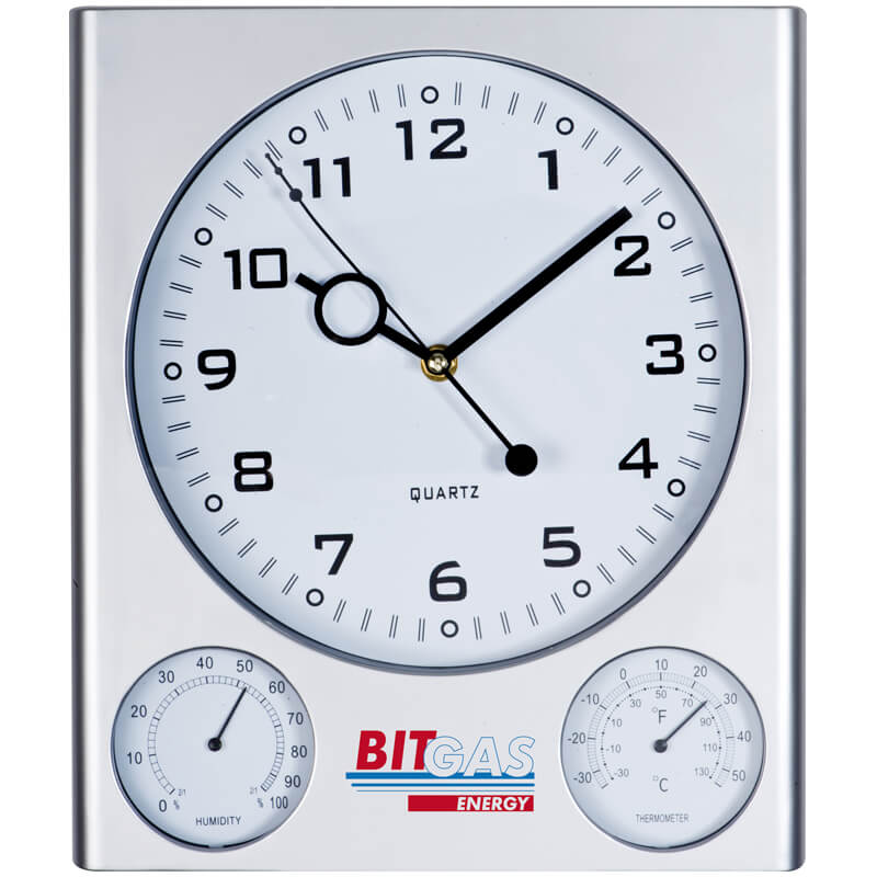 Rechteckige Wanduhr "Saturn" mit Hygro-/ Thermometer