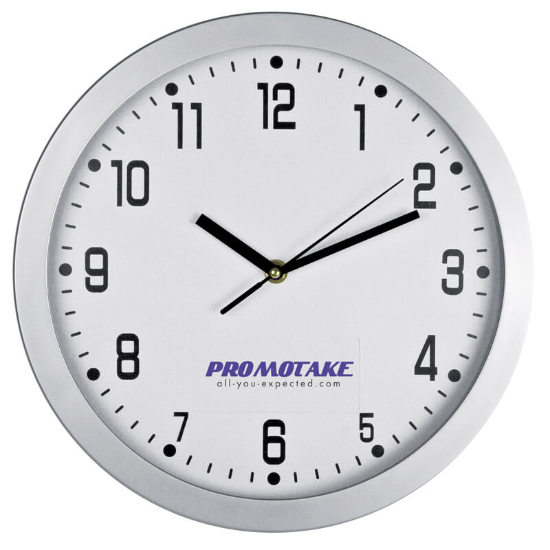Wanduhr ROUNDABOUT : Rahmen und Ziffern aus Aluminium, extra breite Kante für Ihre Werbeanbringung, Batterie: 1 x AA (exkl.)