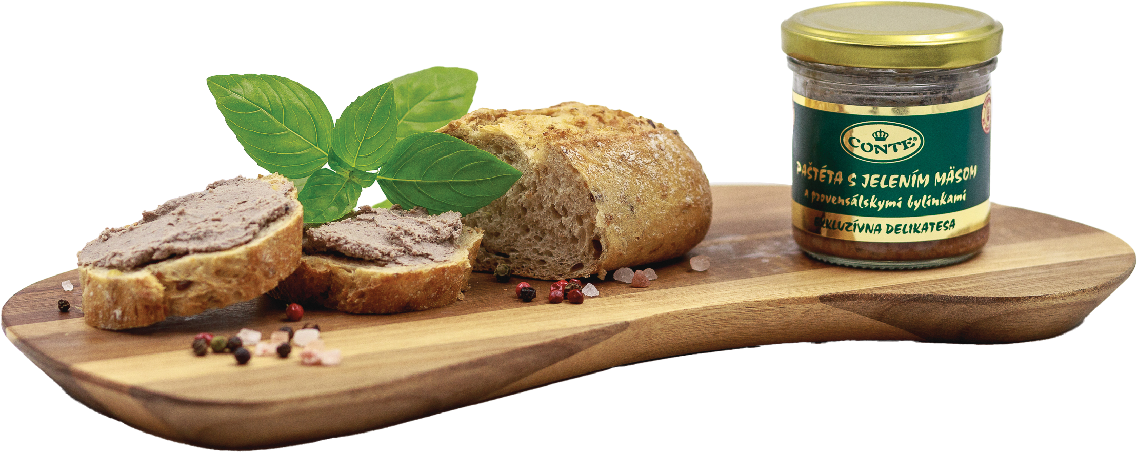 Pastete mit Hirschfleisch und provenzalischen Kräutern 110 g - köstliche Pastete aus 30% Leber, 30% Speck und 20% Hirschfleisch, gewürzt mit provenzalischen Kräutern, Maisstärke, Salz und Gewürzen. Ohne Ethik, sterilisiert.