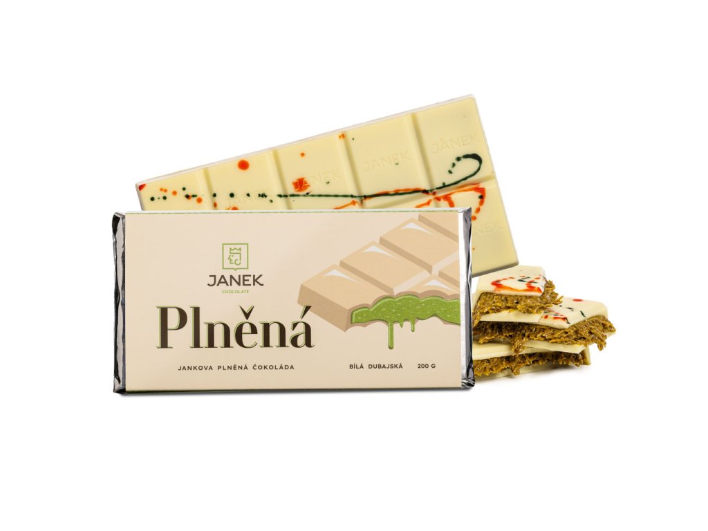 Exklusive weiße Schokolade mit zarter Pistaziencremefüllung, knusprigem Kadayif und einem Hauch Tahini. Eine luxuriöse Dubai-Kombination, die frische Süße mit einzigartigem Knusper vereint. Orientalisch inspirierte Schokolade, die jeden Liebhaber unkonventioneller Aromen begeistert. Enthält Gluten. Zutaten: weiße Schokolade (Kakaobutter 31,1 %, Vollmilchpulver, Zucker, Sojalecithin, natürliche Vanille), Pistazienpaste, Knafeh (Weizenmehl, Weizenstärke, Salz, Sojalecithin, Sonnenblumenöl, Kaliumsorbat, Wasser), Butterreinfett, Tahini, natürliche Farbstoffe (E141, E100, E163). Gewicht: 200 g