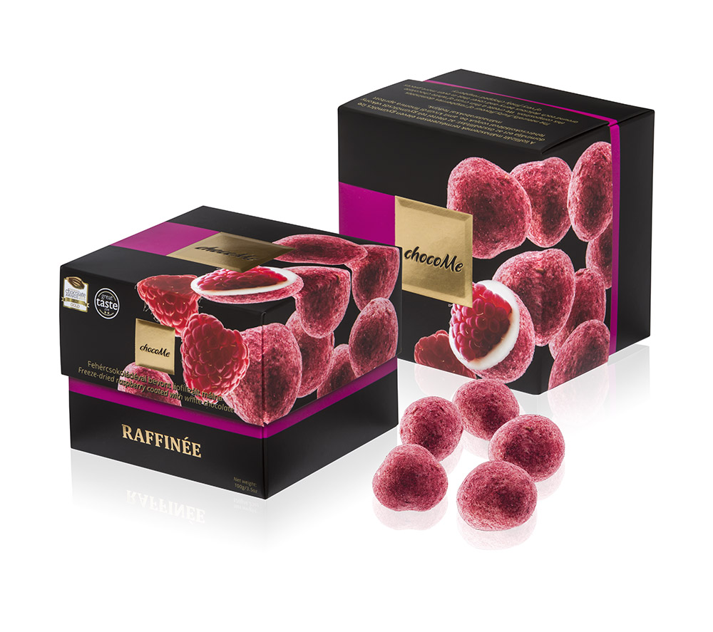 Gefriergetrocknete Himbeeren in weißer Schokolade in Himbeerpulver sorgen für ein intensiv-fruchtiges Erlebnis. Der süße Geschmack von Himbeeren in Kombination mit feiner weißer Schokolade und Bourbon-Vanille wird durch eine Prise Himbeerstückchen abgerundet, die für ein noch intensiveres Aroma sorgen. Jedes Dragee ist in einer Geschenkbox aus der Raffinée-Kollektion verpackt. Ideal für Liebhaber von fruchtig-schokoladigen Köstlichkeiten.