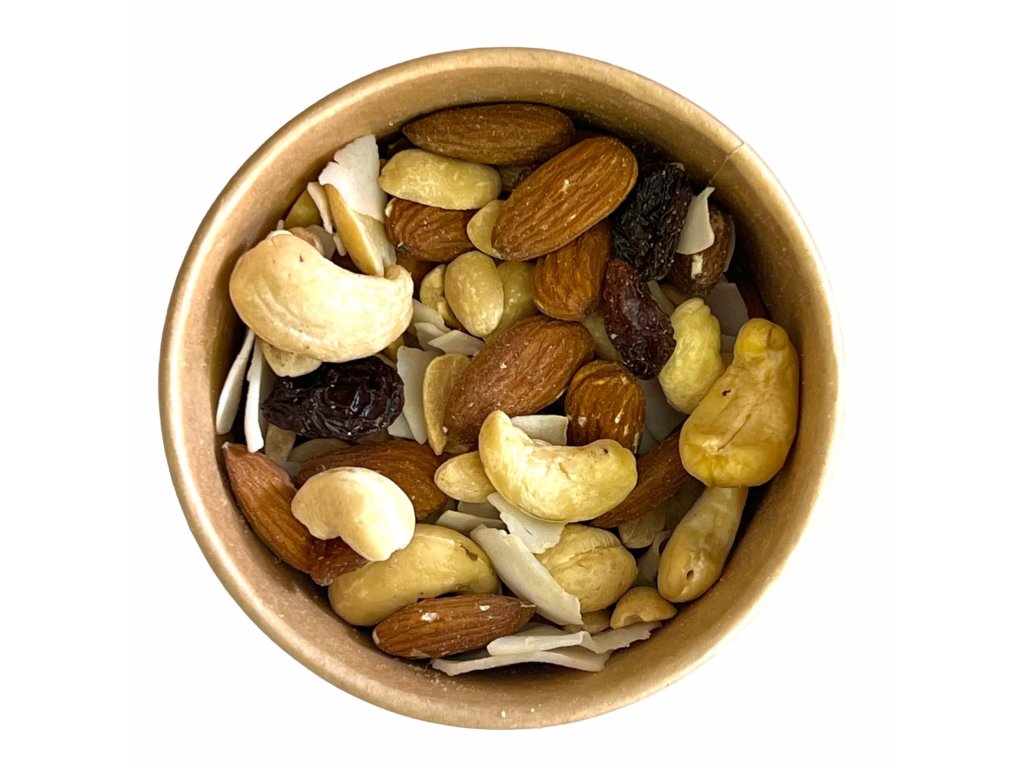 Eine beliebte Mischung mit allem Drum und Dran. Hochwertige Nüsse, Erdnüsse, Kokosnuss und Rosinen. Eine ausgewogene Kombination aus Fett und Zucker. Ideal als Snack oder gesunder Leckerbissen.