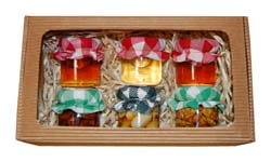 Set von 3 Arten von Nüssen in Honig in einem Karton