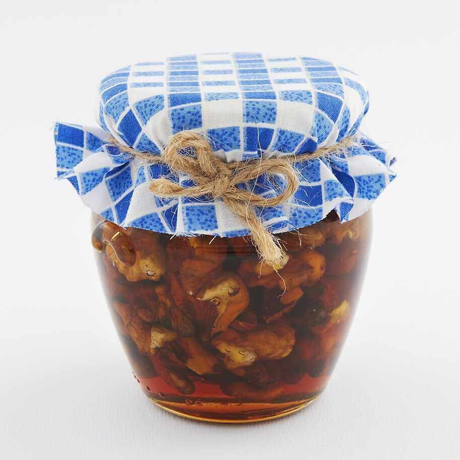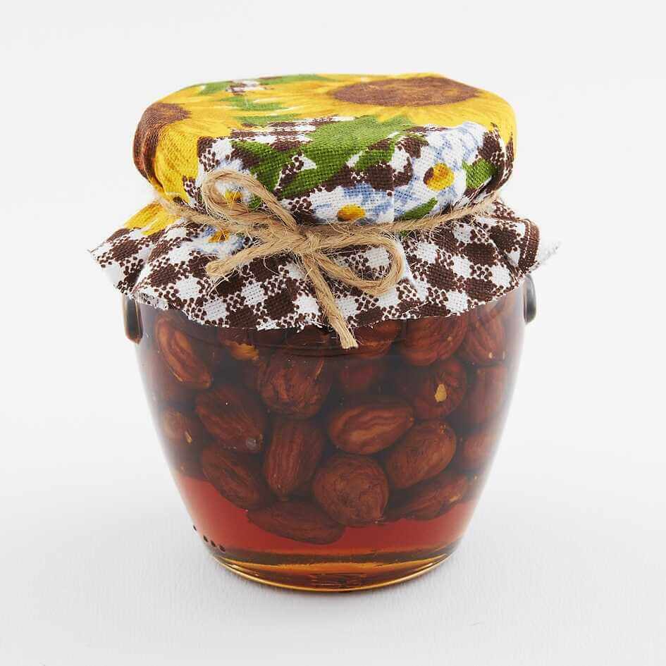 Sada orieškov v mede v kartóniku