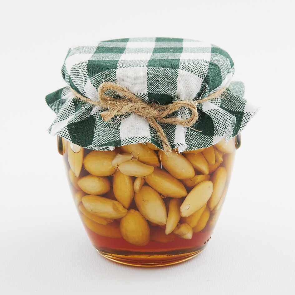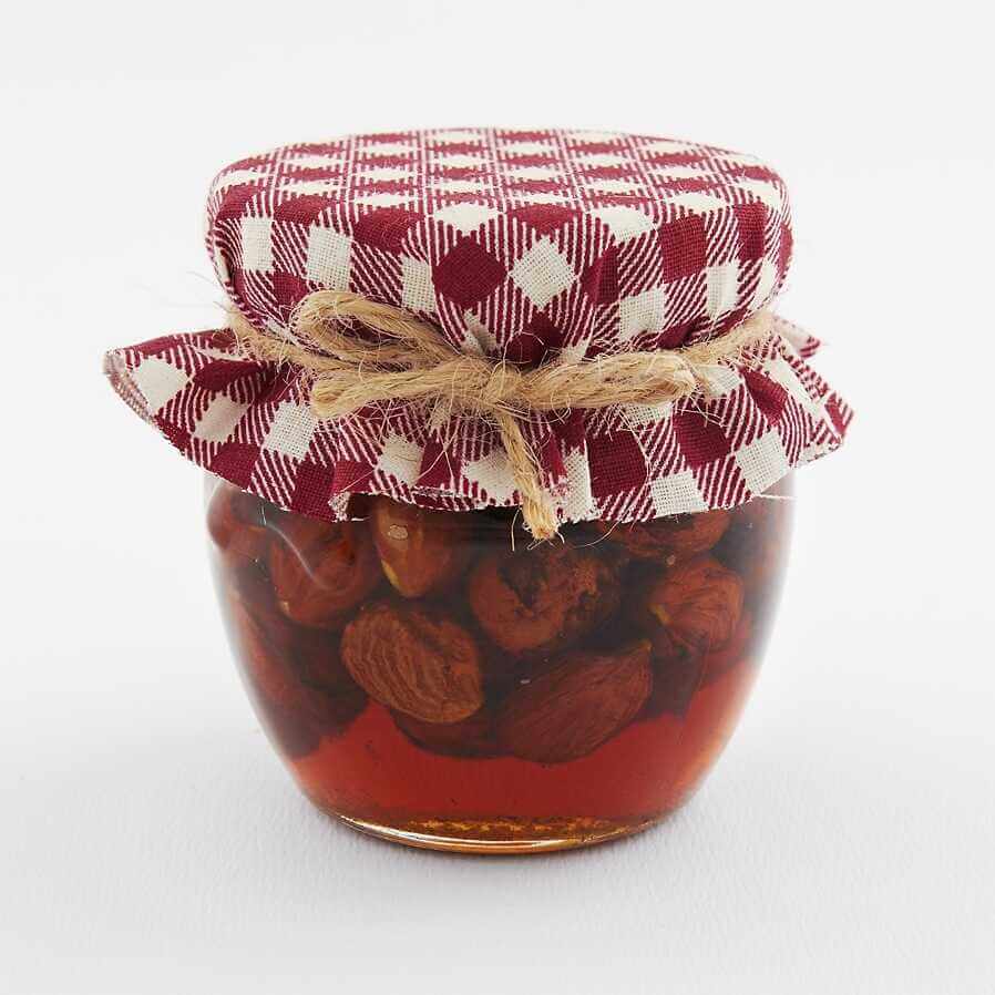 Sada orieškov v mede v kartóniku