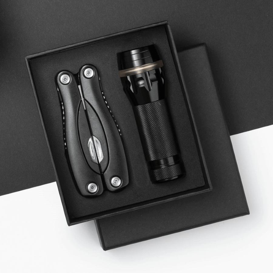 Praktická súprava Colorado II obsahujúca svietidlo a veľký multitool. Svietidlo vyrobené z hliníka. Vytvára lúč svetla. Profesionálne a praktické multifunkčné náradie obsahuje profesionálny roztvárací systém a funkciu Safe – chráni pred zatvorením ostria. Súprava je zabalená do elegantnej škatuľky.