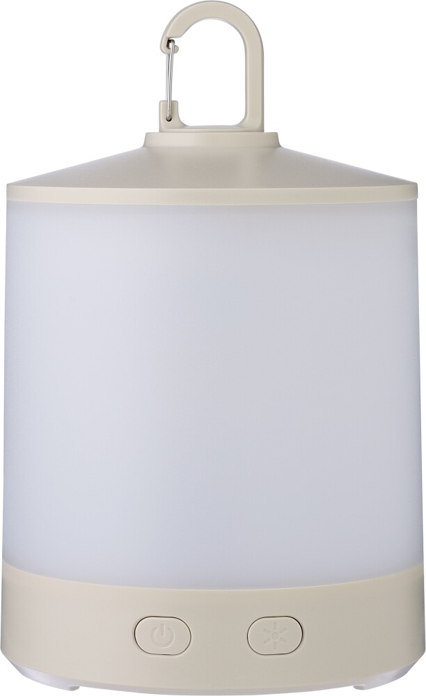 ABS lightbulb (60 lumens) with a 400mAh rechargeable battery. USB-C charging type. Features a metal clip and three light modes. IPX3. Dimensions: 6 x 6 x 17,4 cm