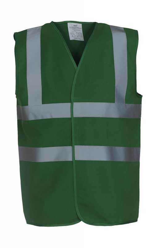 ·100% Polyester ·Sicherheitsweste mit Reflektorstreifen ·Großzügig geschnitten, kann über der Kleidung getragen werden ·Einfassungen in Black ·ISOEN20471:2013 Klasse 2.