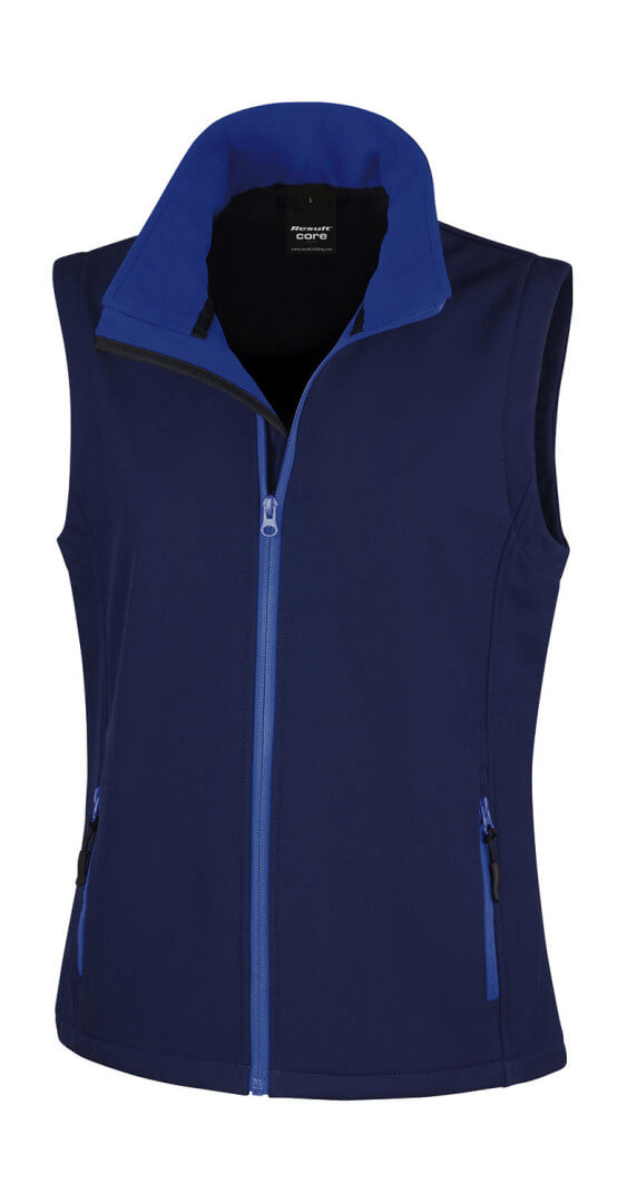 Damen-Softshell-Weste aus recyceltem, bedruckbarem Material, 280 g/m², aus: Außenschicht: 100% Polyester, recycelt (TOPGREEN®), Innenschicht: 100% Polyester, recycelt (Microfleece), 2-lagiges mechanisches Garn aus recyceltem Softshell, umweltfreundliche YKK NATULON®-Reißverschlüsse an der Vorderseite und an den Taschen, Stehkragen, flacher Bundsaum, Aufhängeschlaufe, schmaler Bund.