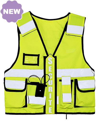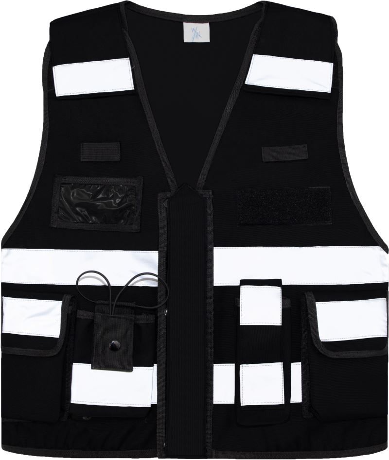 Stylische Einsatzweste für den Sicherheitsbereich mit auffälligen Reflektorstreifen, die die Blicke auf sich ziehen | Durchgehender Frontreißverschluss, verstärkt mit einer Klappe | Flexibler Einsatz durch diverse Taschen | Rückenpatch mit weißem Reflexdruck: „Securite Privee“, Reißverschlusspatch mit Reflexdruck: „Securite“ und Brustpatch ohne Druck, lose im Polyethylenbeutel | Abreißetikett | Praktische Doppelgrößen mit verstellbaren Verschlusselementen zur individuellen Anpassung.