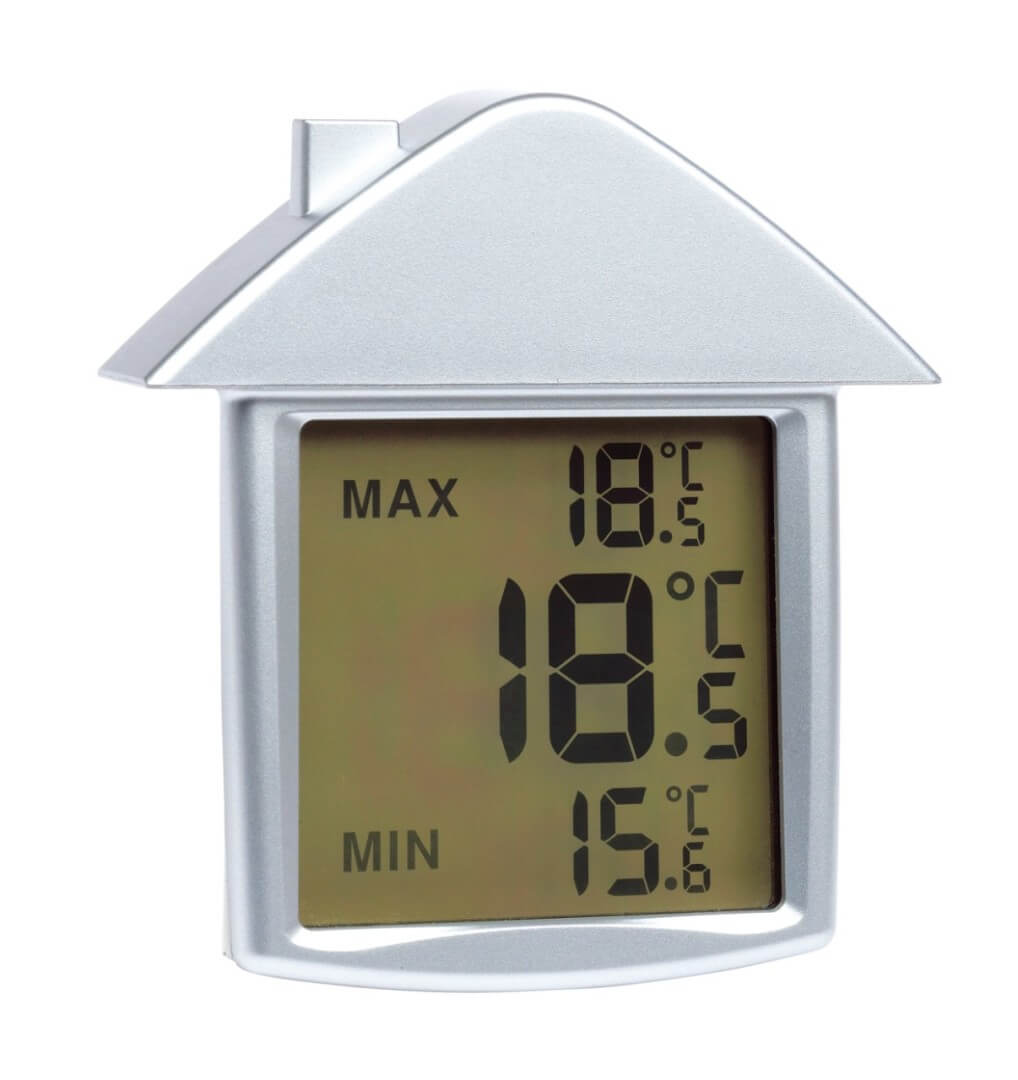 Thermometer "Comfort" : mit Temperaturanzeige des gemessenen Minimal- und Maximalwertes, Messbereich 0-50°C, mit Saugnapf und abnehmbarem Hausdach für eine variable Anbringung