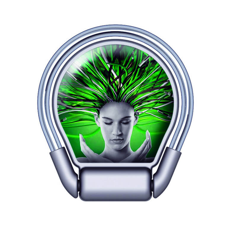 Praktische Dinge mit unterschiedlichen Funktionen sind immer die besten. Das beweist die 3in1-Lehne für Mobiltelefone, die Fingerschlaufe und die Halterung für die Belüftung. Das moderne Design schafft einen hochwertigen und ausgeklügelten Fingerring für einen komfortablen und festen Halt des Mobiltelefons in der Hand und dessen Befestigung am Lüftungsgitter des Fahrzeugs. Mit der Fingerschlaufe lassen Sie Ihr Mobiltelefon nicht einfach fallen und die Schlaufe dient auch als praktischer Ständer (Lehne), wenn Sie vielleicht einen Film ansehen möchten. Das moderne Design bietet sich geradezu für einen vollfarbigen Druck eines Epoxidlogos im Hauptteil des Halters an. Sie können aus mehreren eleganten Metallfarben wählen.